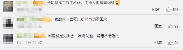 而見面會上的另一個小插曲,則來自於因為合約書上明載「見面會沒有唱歌的環節」但是由於粉絲相當期待,忍不住三番四次的要求泰勒絲唱歌,不過泰勒絲仍然只是對了個口型,讓粉絲也忍不住笑稱「泰勒絲的嘴特嚴實」、「泰勒絲一言既出粉絲也勸不回來」、「最後的那個lover唱了,就是沒有對著話筒罷了」、「我都快急死了」,不過也有粉絲氣憤直呼:「分明就是主辦主不讓,主持人也是有問題」!