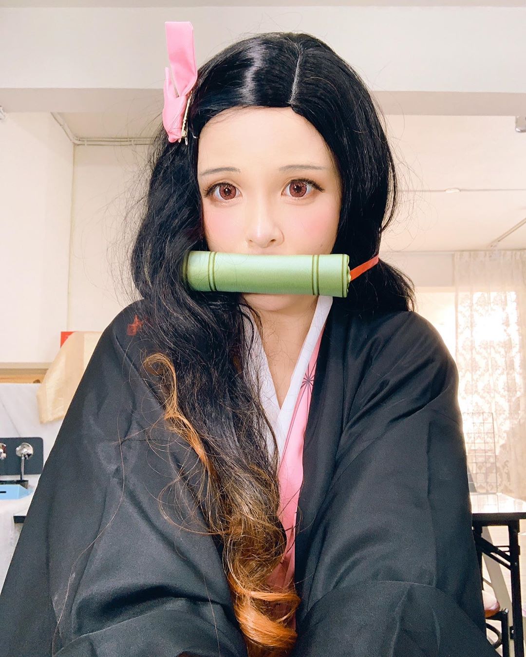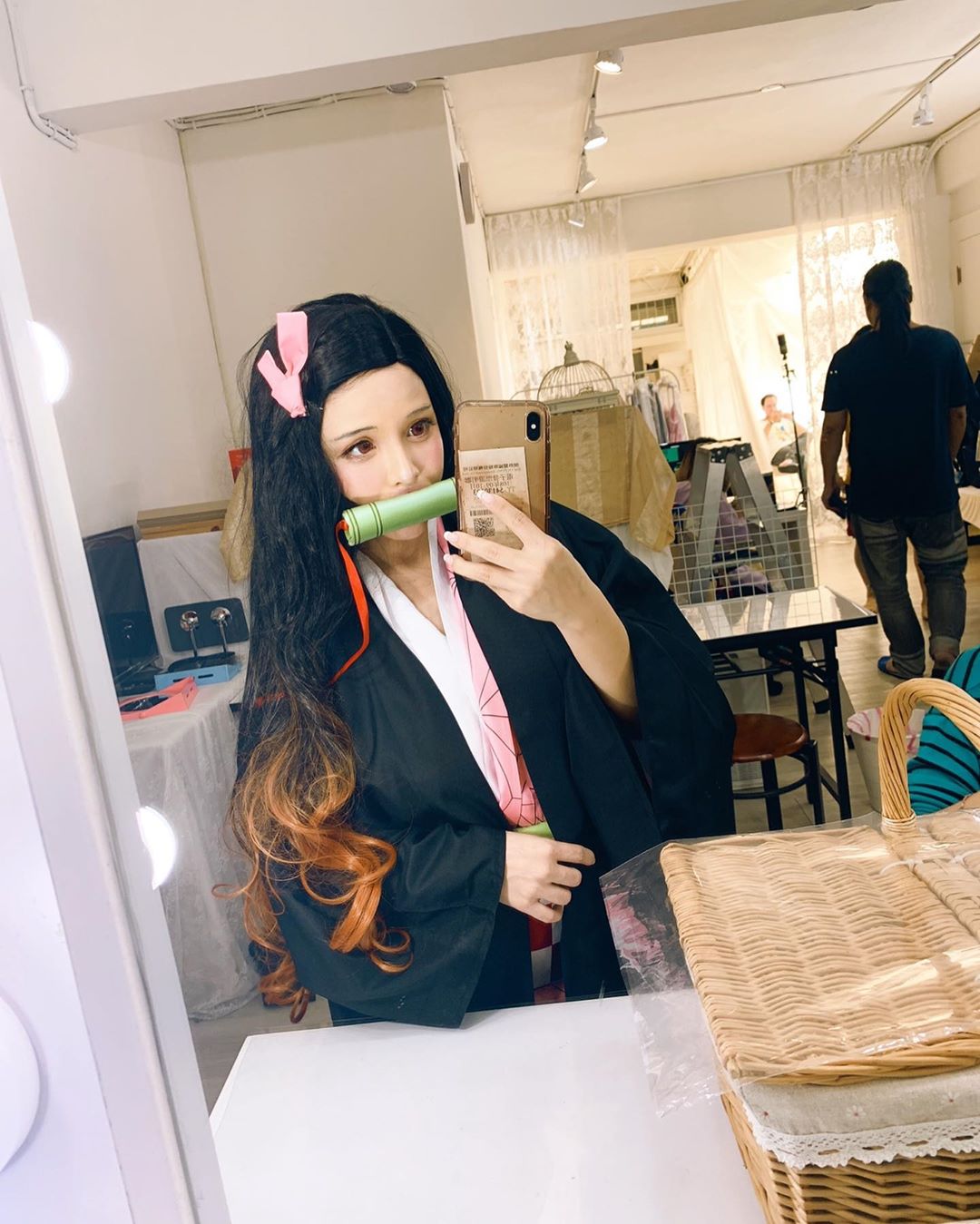 最近陳香菱在社群平台上又上傳了一系列的Cosplay照片,我們從照片中可以看到她戴著黑色的假髮,髮尾特別染了咖啡色,更貼近動漫中禰豆子的髮型,身穿黑粉色的和服,嘴巴還咬著招牌的綠色竹子,整體的造型看起來可以說是非常傳神又真實,讓不少網友看完都紛紛直呼,「超可愛的啦!!!」