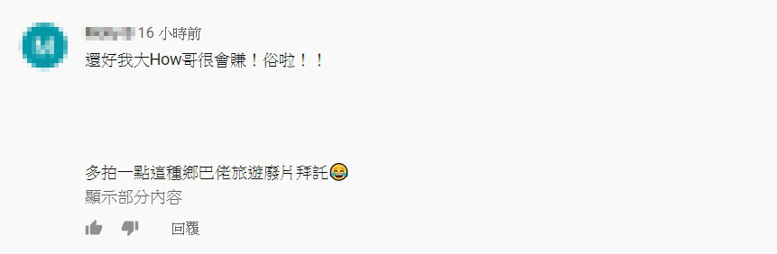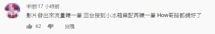經過這次慘痛的經驗,HowHow也拍攝影片提醒網友,「大家住飯店沒事不要亂碰冰箱,很可怕,很貴。」然而影片一出,立刻有不少人因此長知識,也有許多粉絲笑翻認為,HowHow非好心提醒大家,而是為了靠廢片把賠的錢補回來,「沒關係這部片你就賺回來」、「影片發出來流量賺一筆,回台接到小冰箱業配再賺一筆,How哥路都鋪好了」、「拍一部短片就賺回來啦!」