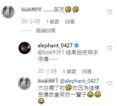 個性幽默搞怪的阿樂,在光棍節的晚上,也於個人IG上傳了三張照片,其中兩張分別是雙手環抱著自己的背影照,以及一張靠著牆反手「壁咚」自己的照片,配上文字敘述「今天光棍節捏...沒事啦~我過得很開心,我真的,很開心喔~疑!我的臉怎麼濕濕的...」,此文一出笑翻了不少粉絲,網友們紛紛在下面留言表示「哈哈~太會了吧」、「太白癡了拉,你因為這樣受傷我會笑你一輩子」、「令人鼻酸」。