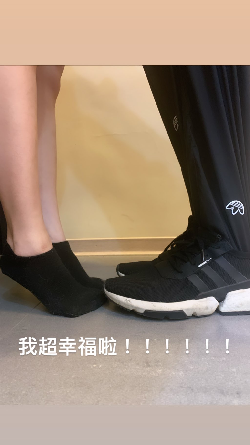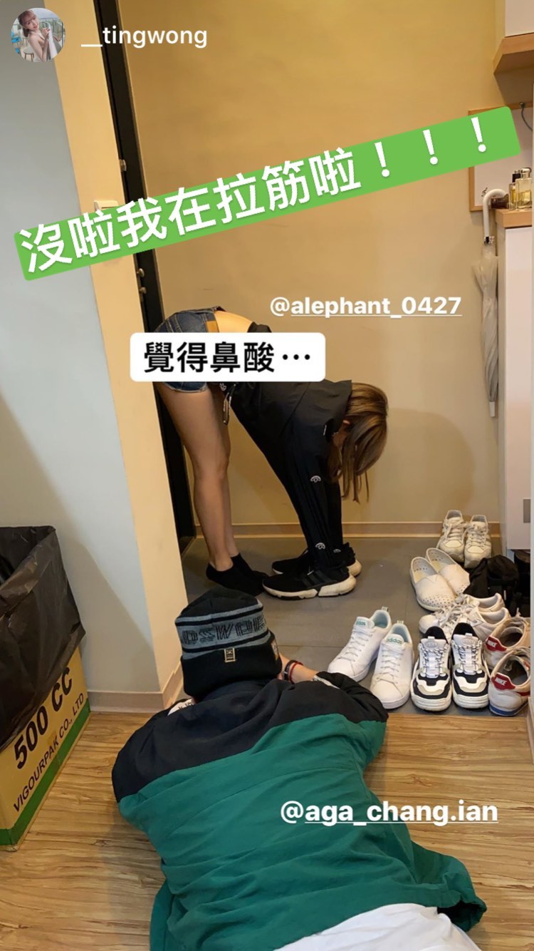 然而限時動態發出沒多久,隨後阿樂又再發佈了一張照片,讓「放閃」真相大公開!第二張照片中可以看到,以第三人視角的方式看出前一則限時動態的現場。原來前一則照片的兩雙腳都是阿樂一人獨自演出,只見阿樂雙腳微微墊起,並將雙手套上一件運動褲插入一雙運動男鞋之中,自己公開放閃照的真相,同時也配上文字「沒啦在拉筋啦!!!」,並在下方附上一行PS.「覺得鼻酸...」