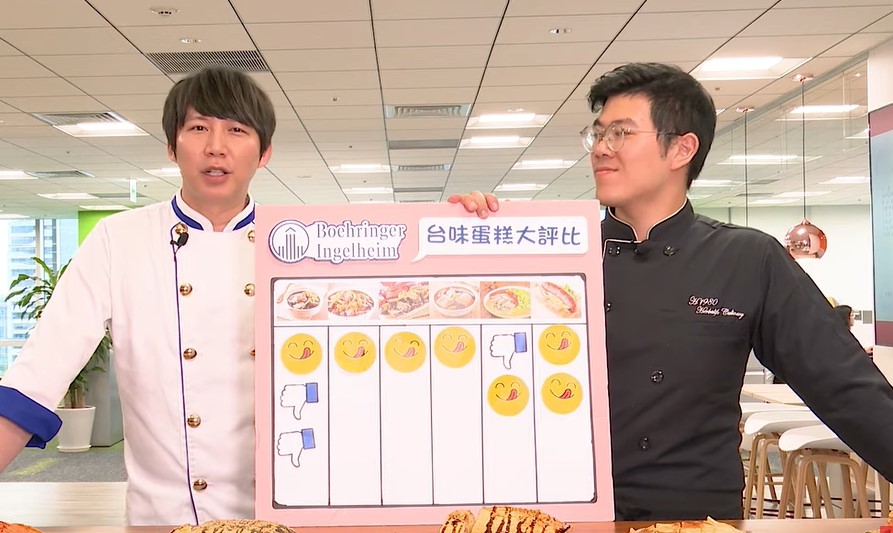 最後到了重頭戲試吃時間,外觀超精緻的台味蛋糕味道是不是一樣美味呢,經過員工試吃後,總共收集到七個讚,而大腸包小腸蛋糕竟然得到兩個讚!兩人順利挑戰成功,阿賢師也贏得六千塊獎金。
