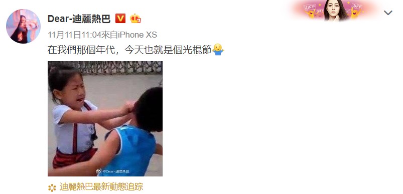 事實上,迪麗熱巴在前陣子光棍節的時候,在個人微博發雯表示「在我們那個年代,今天也就是個光棍節。」配上一個雙手一攤無奈的表情符號,短時間就獲得100萬以上的轉傳。迪麗熱巴除了戲劇中出色的表現外,也參予了各種綜藝節目中,而在節目中逗趣可愛的真性情,更吸引了許多粉絲的愛戴。