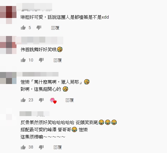 然而這次的「獵人局」,由於反骨使出各種「梗」,讓整場充滿歡笑,因此也有不少網友留言表示,「反骨果然很好笑哈哈哈哈哈從頭笑到尾」、「琳妲好可愛,話說這團人是都嗑藥是不是xd」、「這局根本趁亂告白局 XD」、「有鋒澤又有偉晉就夠爆笑了,再加上反骨笑到會內傷」。