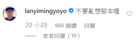 花絮影片一出,立刻引起網友熱議,紛紛留言,「我到底看了什麼」、「直接玩壞」、「爽嗎」、「你是不是其實很爽」、「亦明薪水一定很高⋯⋯」、「求藍亦明心裡陰暗面積」、「卡完的那個反差有夠尷尬」,而藍亦明也現身搞笑回復「不要亂想腳本喔」。