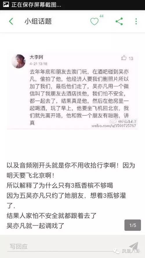 然而在今日(18)微博上又爆出一段吳亦凡與其他女子的語音檔,在一開頭時男方首先出聲打了招呼,而當女方詢問「你在幹嘛?」時,男方也回應:「我要準備睡覺了,我在房間幹嘛?」,接著兩人更互相開玩笑表示對方的回應很兇,接著男方更抱怨自己不想工作,在整段對話中聽起來神似熱戀中的情侶。對此就有許多網友認為影片中並沒有露臉,光靠聲音辨認的話似乎有失準確度,但也有一派的網友認為吳亦凡先前被爆出許多風流史,這次的語音檔聲音也神似吳亦凡,認定就是他本人。