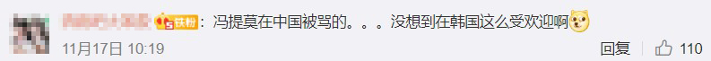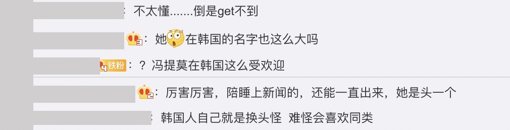 但也有部分網友對於馮提莫在韓國的高人氣質疑表示:「有人氣幾條推特,幾個才一千播放量的ins視頻就叫在韓國有人氣了...」、「有人氣個屁,我在韓國怎麼從來沒聽人提起過?」、「不太懂......倒是get不到」、「韓國人就是換頭怪,難怪會喜歡同類」,引起正反兩極的討論。