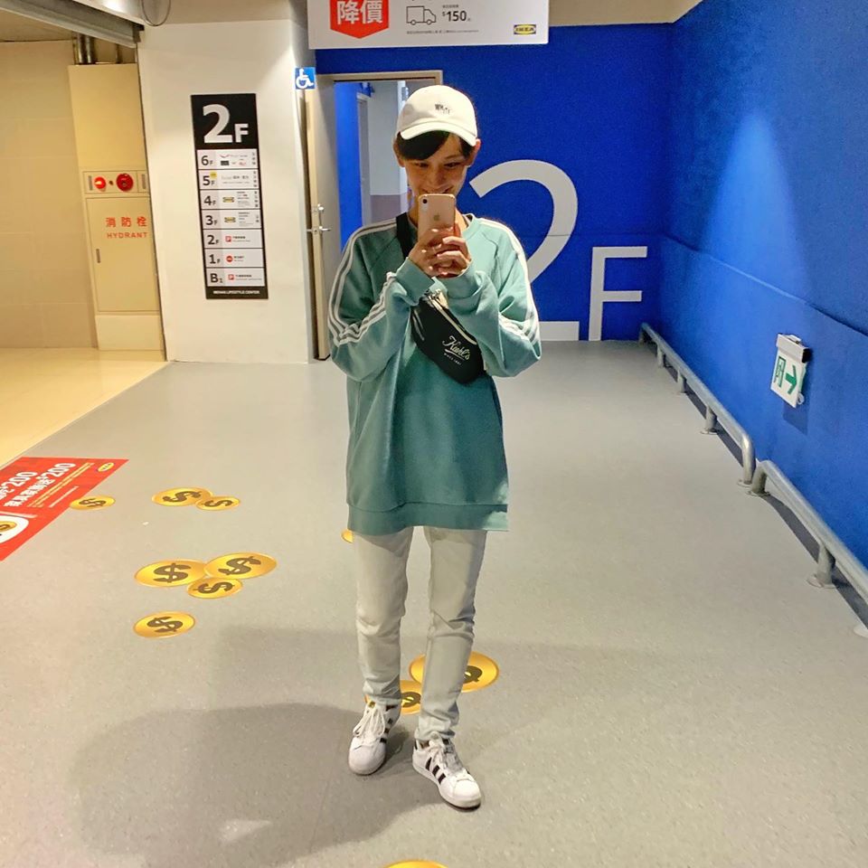 從宥勝貼出的照片中我們可以看到,他老婆身上穿著他的粉綠色上衣,因為衣服夠長,所以可以幫忙遮住褲子沾到血的地方,讓老婆可以自在的在外面行動!而宥勝自己則是穿著老婆的粉紅色短版上衣,還好有穿著白色的T恤,不然可能就要露肚臍了呢!