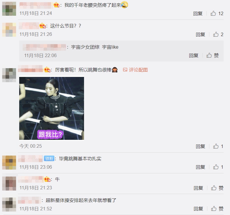 孟美岐的驚人身體素質也引起網友熱議,紛紛留言,「超新星體操安排起來,去年就想看了」「她臉碰到了胸!」「不說沒注意,一看脖子疼了起來」「畢竟跳舞基本功扎實」「我的千年老腰突然疼了起來」「牛」「寶寶有點像個蟲」「厲害著呢!所以跳舞也很棒」。