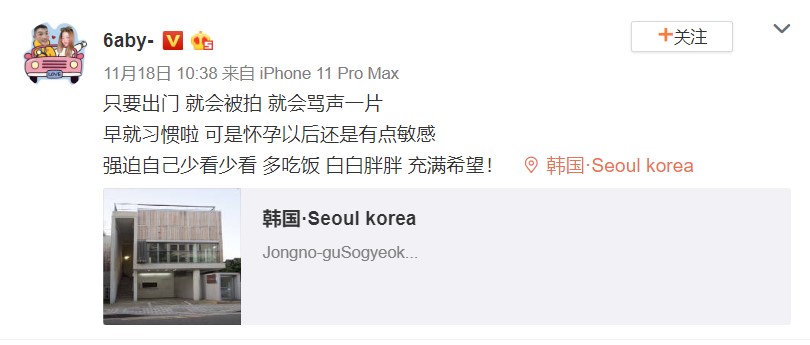 抖音紅人山東小鮮肉羊羊羊,因把女友小可愛從42.5公斤養胖到100公斤,受到網友們熱議,今年年初兩人也成功步入禮堂,目前小可愛也懷孕7個月,兩人之間的甜蜜日常,也讓取得許多網友的共鳴。近日兩人前往韓國旅遊,然而,小可愛在微博上發文表示「只要出門就會被拍就會罵聲一片,早就習慣啦可是懷孕以後點敏感,強迫自己少看少看多吃飯白白胖胖充滿希望!」,可看出懷孕後的小可愛,雖然已經習慣了酸民的攻擊,但還是會心理不是滋味。