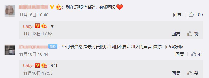 此文一出引起了粉絲們熱烈關注,有網友問說:「為甚麼罵你?」而小可愛也無奈回應:「我也不知道,就說我醜胖之類的..」許多粉絲紛紛對此紛紛力挺小可愛,並且表示那些會攻擊的酸民,都是因為羨慕你們情侶倆過得太幸福,粉絲們安慰表示「別在意那些嘴碎,你很可愛」、「小可愛當然是最可愛的啦,我們不要聽別人的聲音,做你自己就好啦。」隨後小可愛也對這些粉絲們的鼓勵表示感謝「愛你們阿!,心情好多啦」