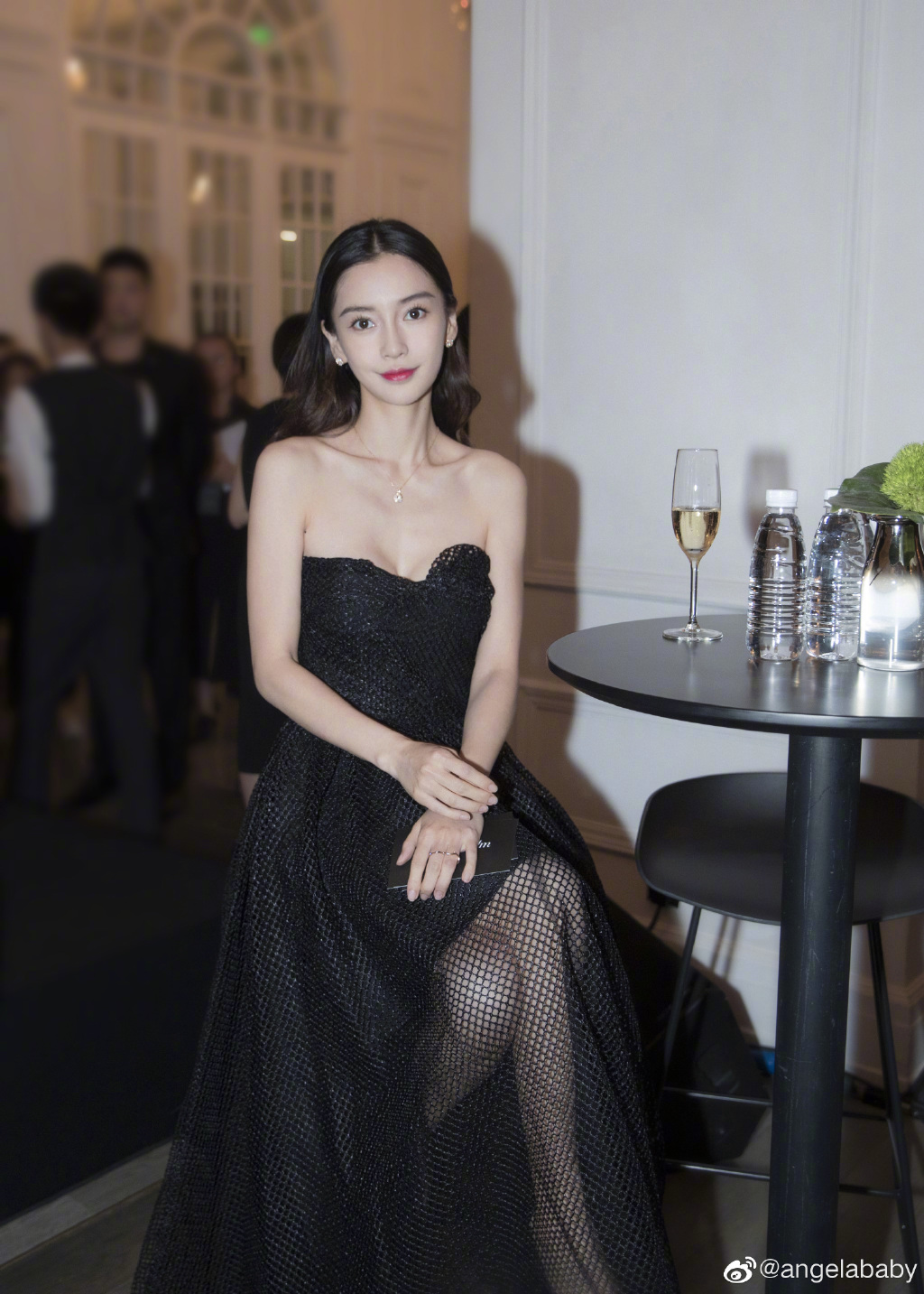 Angelababy楊穎時常出席時尚宴會以及品牌發佈會,前段時間在出席一場時尚COSMO的活動時,身穿一件深V的藍色晚禮服,加上一頭烏黑長髮,完美展現了性感的鎖骨,耳朵也戴上精緻耳環,白皙的手上更佩戴上水晶項鍊,展現出高貴氣質,再加上Angelababy明媚的笑容,令許多粉絲紛紛讚嘆她的氣質。