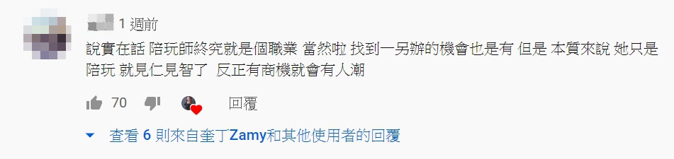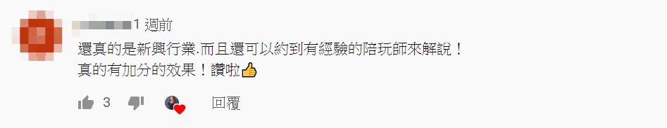 影片一推出也引起熱烈討論,有網友紛紛留言道「說實話,陪玩師終究就是個職業,當然啦,找到另一半的機會也是有,但是,本質來說,她只是陪玩,就見仁見智了,反正有商機就會有人潮」、「突然覺得男生很命苦又很盤,為了要跟女生互動都要付出錢又不一定真的交到朋友..這個我覺得可以找個女生陪玩..要找女友約什麼的就不要想太多了..」,但也有網友持正面態度「還真的是新興行業,而且還可以約到有經驗的陪玩師來解說!真的有加分的效果!讚啦」。