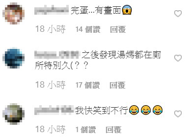 「上班不要看」發出這則IG時也配上一行文字「湯瑪士上班時間的屁喊! #湯瑪感受到新世界了嗎」。貼文一出立刻獲得網友們熱烈回應,同樣是團隊成員的阿傑笑翻表示「幹今年最好笑!」,許多人也對於湯瑪士生動的形容表示「完蛋...有畫面」、「水地獄有夠靠北XDDDD」,同時網友開玩笑表示,「之後發現湯媽都在廁所特別久(??」、「湯馬水龍頭」。