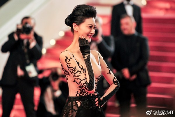 第71屆坎城影展上眾女星們各個都爭奇鬥豔,紅毯的造型更是想出各種花招只為了吸引眾人的目光,當時就有一名大陸女模「趙欣」身穿一件連身褲裝,上半身則是全透明並印有圖騰的設計,然而趙欣的胸前開了深V也不小心將兩點露出來,透視布料更一直延伸到雙腿外側,白皙的肌膚和身體曲線全都一覽無遺,而她在紅毯上全程露點的行為更引起網友討論,許多人都認為此舉有失禮貌,慘遭砲轟。