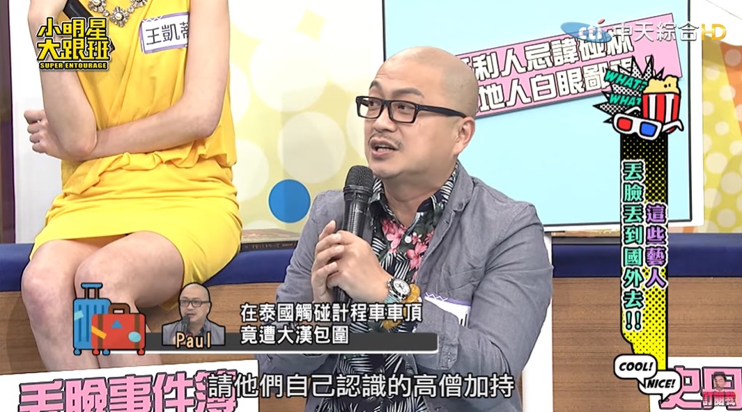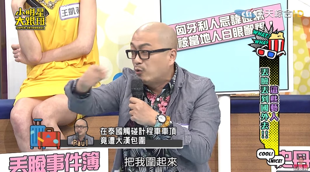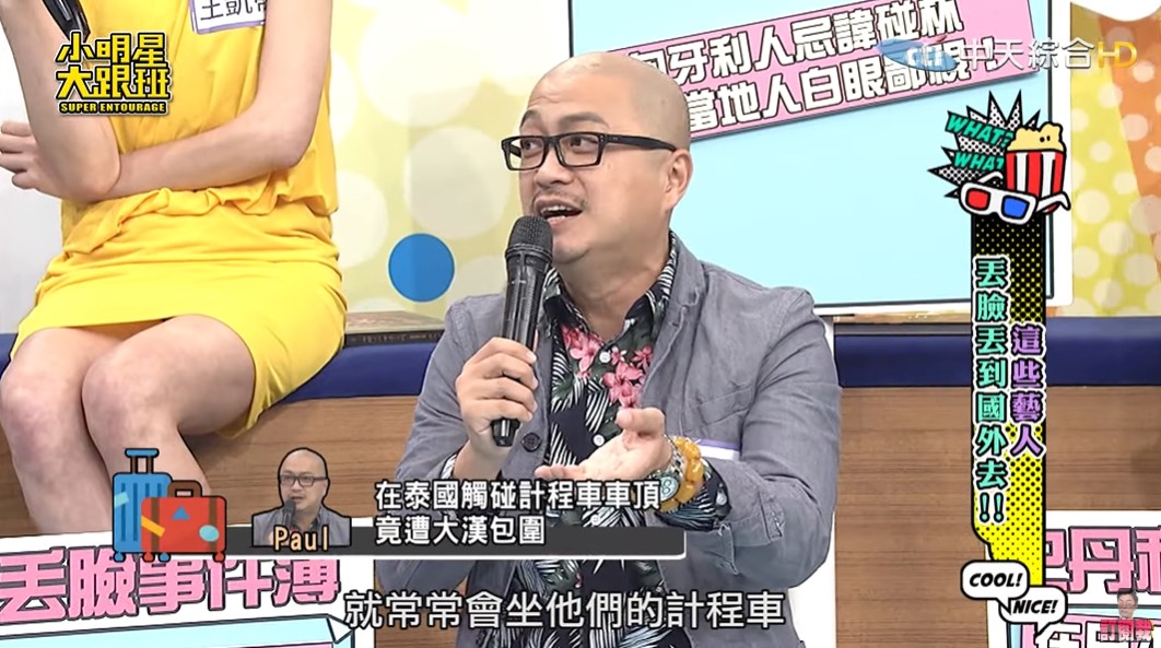 Paul在《小明星大跟班》節目中透露,他曾在泰國旅遊時,跟老婆咪咪搭當地計程車,他在提前下車之後,想說催促老婆趕快下車,便「用手拍了車頂2下」,殊不知這個行為馬上惹了計程車司機發火,同時一旁的計程車司機們也紛紛圍上來,怒氣沖沖的找Paul理論!
