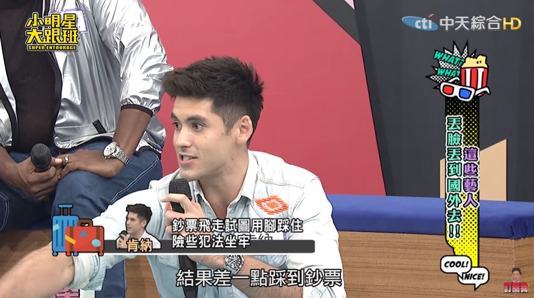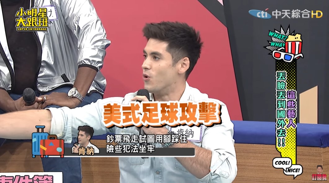 而來賓肯納也分享他去泰國旅遊時發生的誤會,差點讓他被罰錢或是坐牢,他表示,他在泰國飯店結帳時,拿出鈔票結果不小心被風吹走,肯納下意識想要用腳踩住,竟遭服務員以「美式足球攻擊」的招式來制止,後來才得知是因為泰銖上有泰皇,肯納這樣的行為是對泰皇非常不敬,才會讓服務員如此緊張。