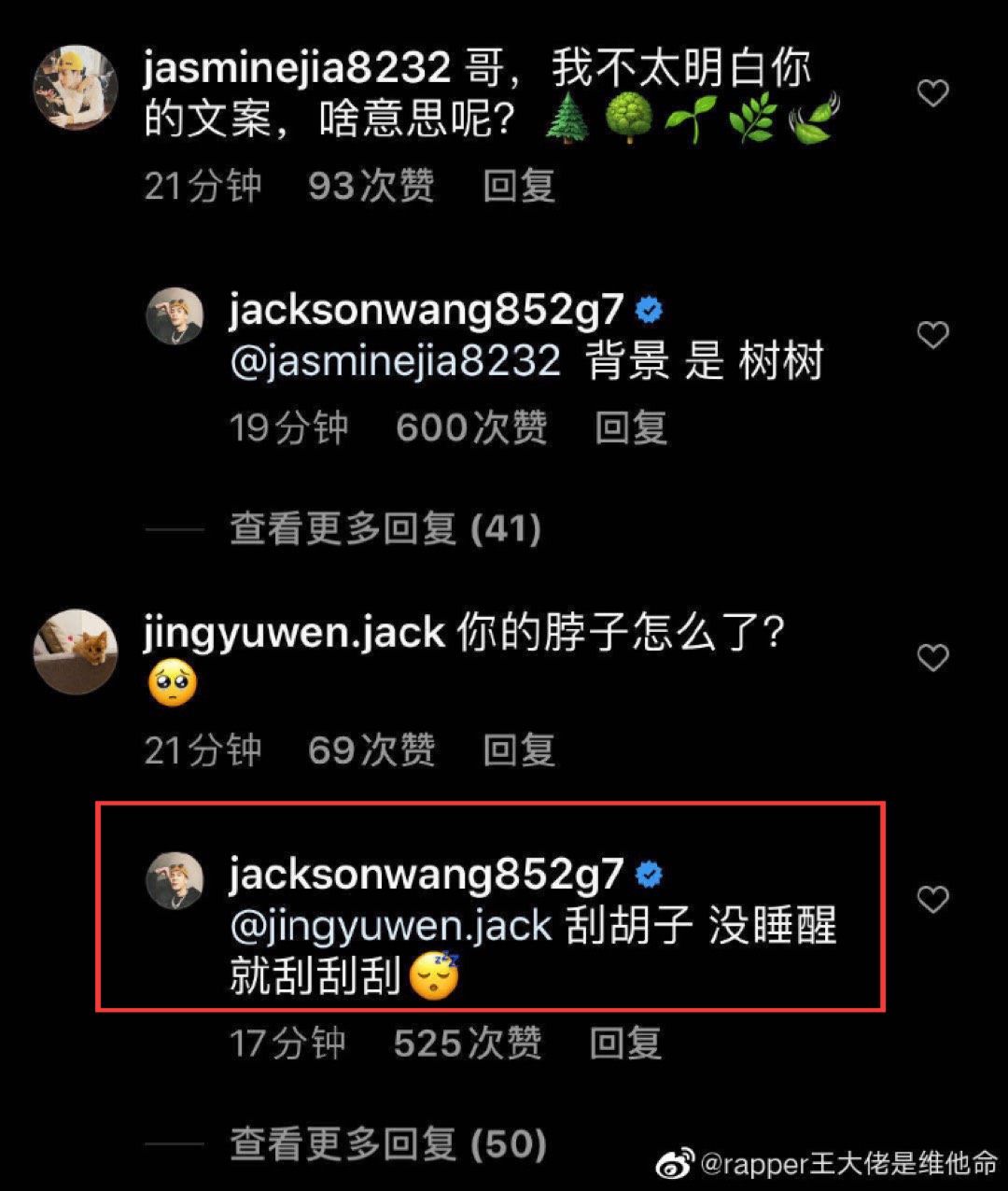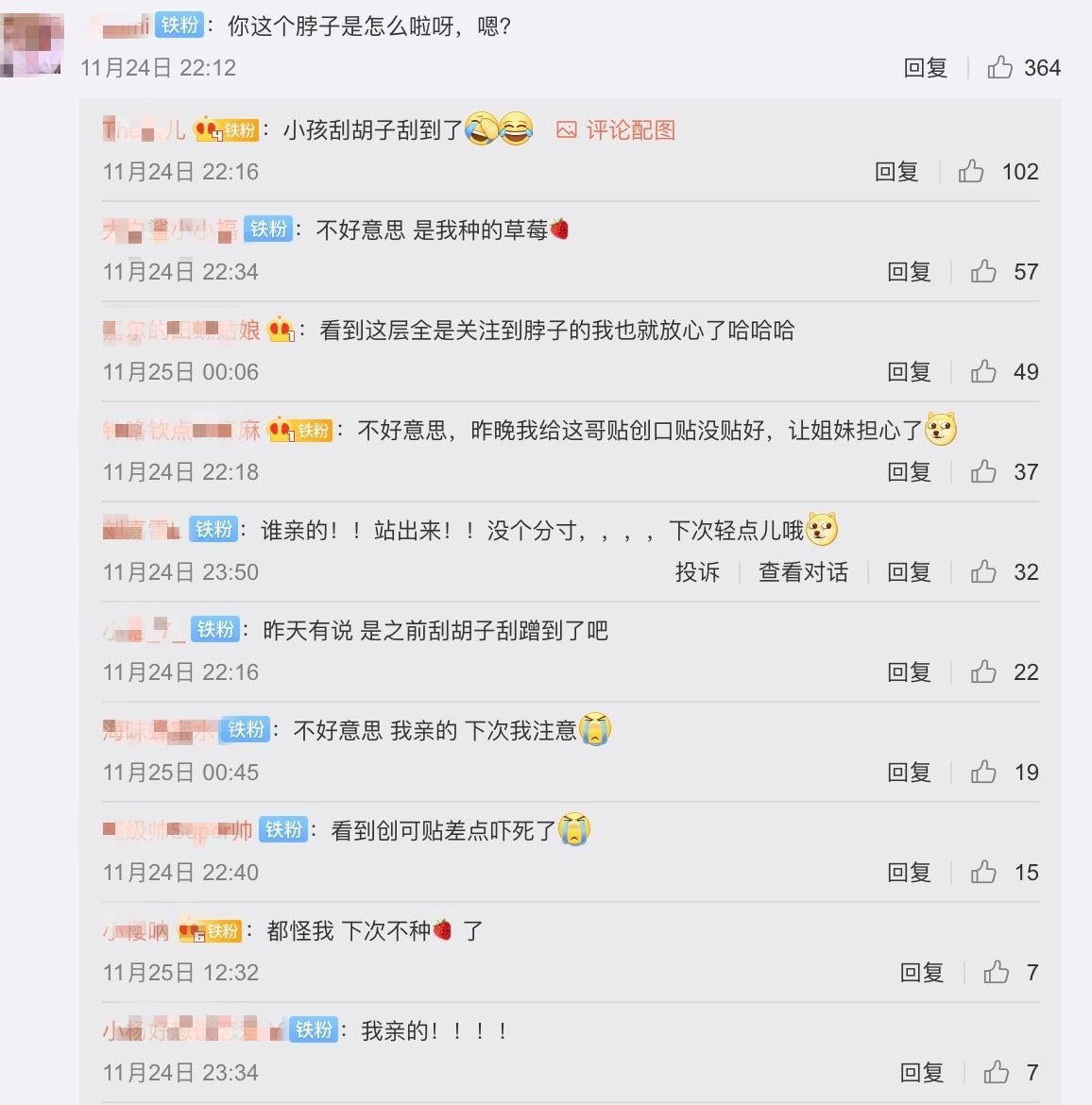 王嘉爾此次不小心在刮鬍子的時候刮傷脖子,立馬引來粉絲關切,不僅多次在公開場合對粉絲做出貼心舉動,此次誤傷事件也讓大家看見粉絲對王嘉爾的積極關切,讓粉絲也笑稱:「刮鬍子傷到了自己 我的愛豆不太聰明的樣子」、「沒睡醒」、「竟是刮鬍子刮到」,讓大家直呼太可愛了。