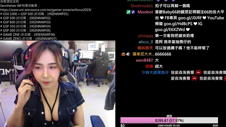 而「baby66」也對當日裝扮做出解釋,她表示衣服實在太小,如果把扣起來會「爆掉」,因此沒辦法將扣子扣上!然而胸前大開的福利放送,也被網友剪輯成精華分享至「遊戲大亂鬥」,引來不少人討論紛紛留言表示「算不算全場最敬業?」、「確定不是代言曼黛瑪璉嗎」、「這個影片有毒,怎麼越看越爽」、「專業的耳機收線」。