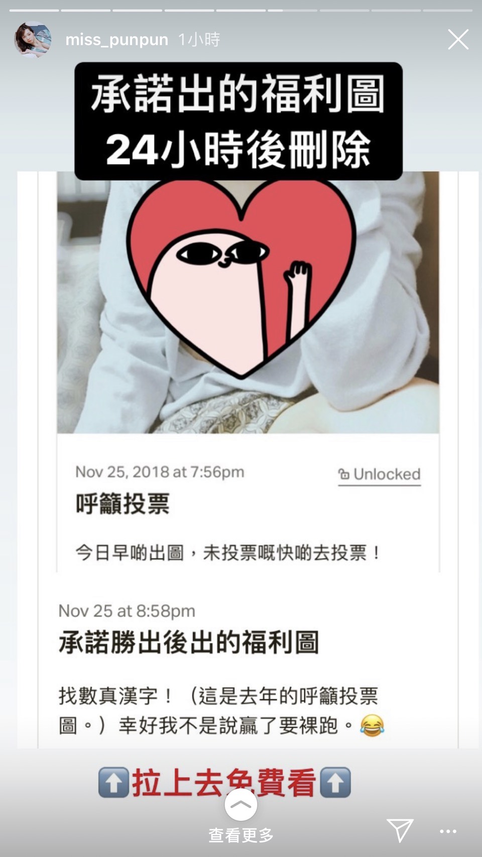 限實動態上滑後可發現,原來這是平時也相當關心時事的搣時潘,此次為了慶祝香港近日區選舉民主黨大勝,在Patreon上傳了一張免費的大尺度福利照片,照片中的她並不露臉,卻解開上衣露出沒穿內衣的胸口,大方放送火辣八字奶,白皙肌膚辣翻網友。