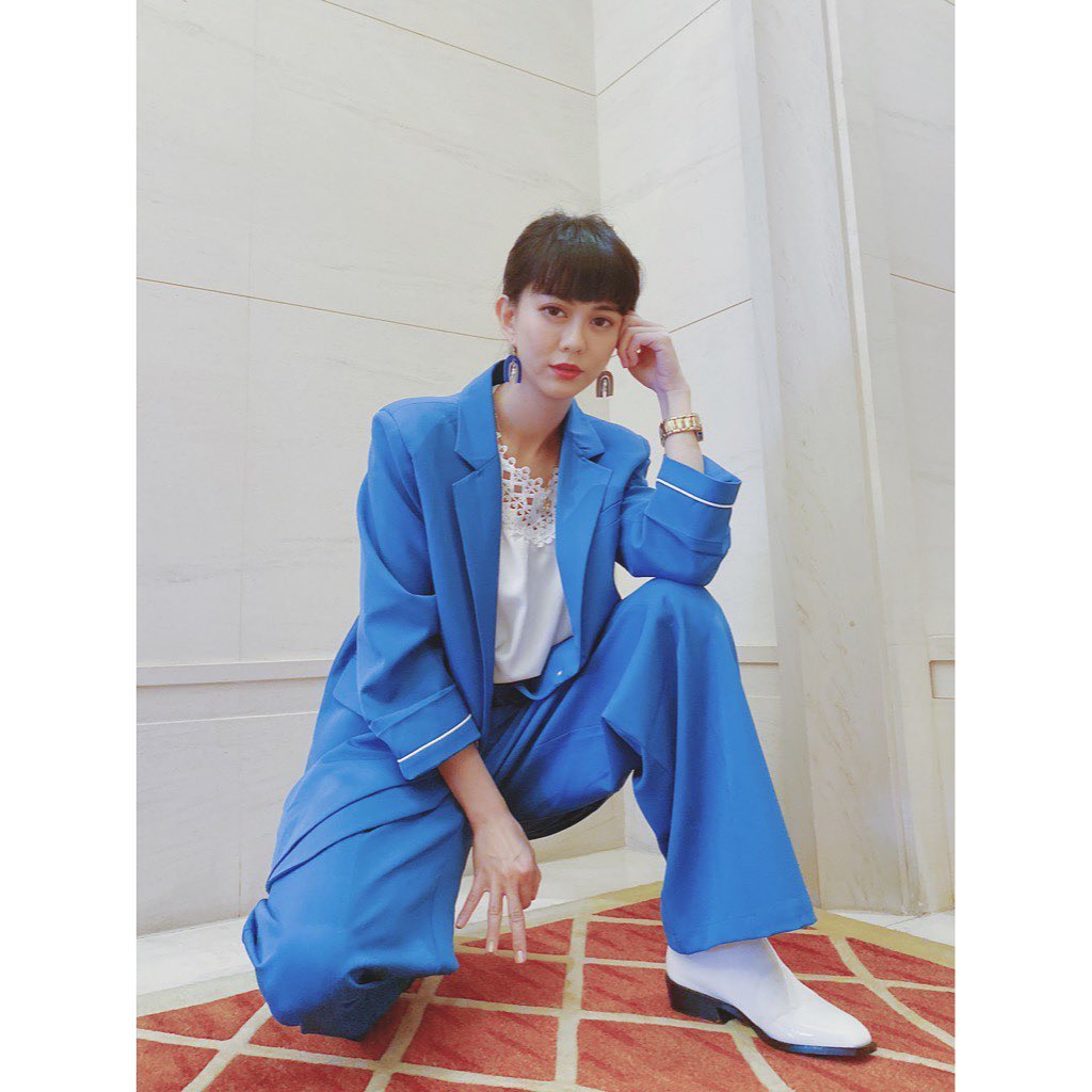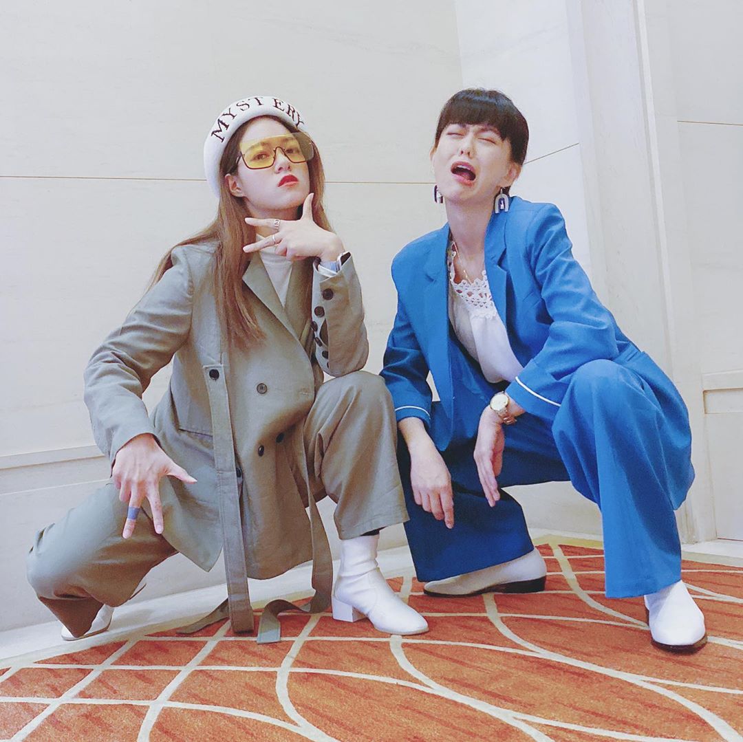 白癡公主日前在Instagram曬出幾張穿西裝耍帥的照片,配文「與痴表妹一起當西裝控,帥嗎?Photo by痴表弟」,照片中只見她穿著水藍色西裝內搭白色蕾絲上衣,配上造型誇張的超大耳飾,對著鏡頭搞怪的擠眉弄眼。而身旁的表妹留著一頭長髮,同樣身穿灰色西裝褲裝,戴著黃色超大墨鏡以及貝雷帽,配合「白癡公主」一起耍帥,模樣較為高冷,和痴痴搞怪的樣子成反差。