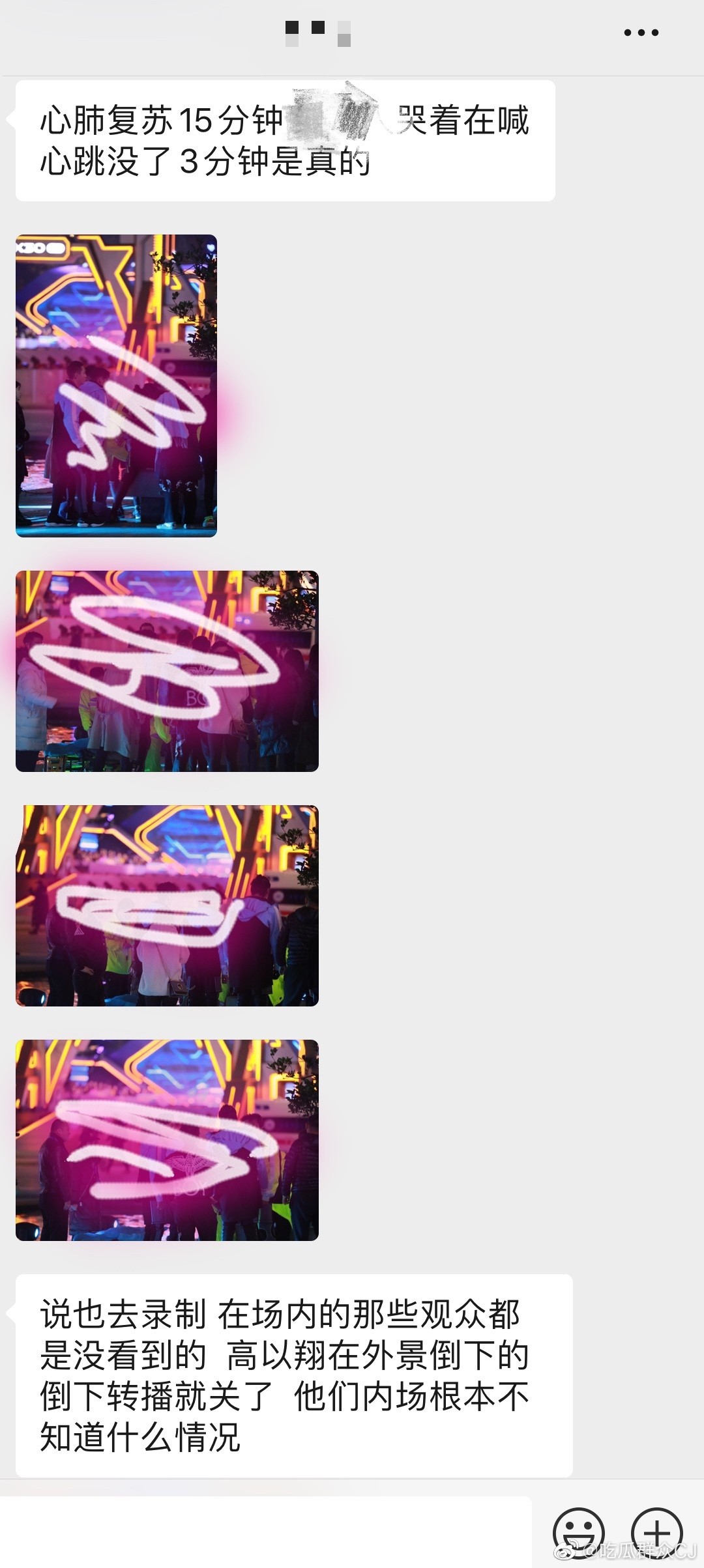 從微博中我們可以看到有不少現場觀眾在討論這整起事件,有人留言表示,「至真的有看到CPR15分鐘,還有人哭喊『心跳沒了三分鐘』!」但是畫面被切掉,所以大家都沒辦法很清楚後來的情況。而且那天同時在場的藝人還有辰亦儒、黃景瑜、陳偉霆等人,從網友們拍攝到的照片裡,我們可以看到陳偉霆緊張到雙手合十,在幫高以翔祈禱中,而觀眾也說,「當時黃景瑜一直大喊『醫生呢?』」現場整個一片混亂!