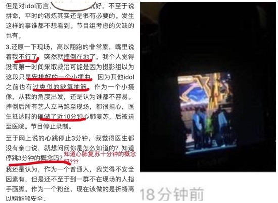 然而這也不是浙江衛視第一次對於「藝人人身安全」出包,過去張杰在錄製《王牌對王牌》時使用玻璃管吹乒乓球,而當時張杰在錄製時就曾提醒節目組這個遊戲具有危險性,開始操作時也曾向節目組表示身體不太舒服,但卻遭到無視,之後張杰就因為缺氧而昏倒,臉部也撞到椅子導致瘀青,節目組也並未公開給大眾一個交代,令粉絲們相當不滿。而在2013年時,釋小龍的助理「彭佳璿」參加跳水節目《中國星跳躍》因在無人注意下試跳3米台,等到有人發現時已經在水面上載浮載沉,不幸當場過世。綜合以上節目發生過的意外,許多網友都要求浙江衛視重視藝人安全,引發討論。