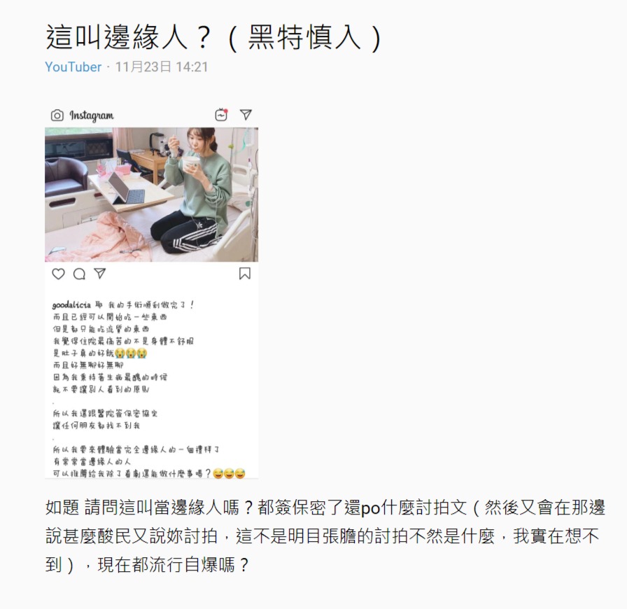 「愛莉莎莎」開刀住院體驗邊緣!遭Dcard網黑特痛批「討拍」…留言區大反轉嗆爆原PO