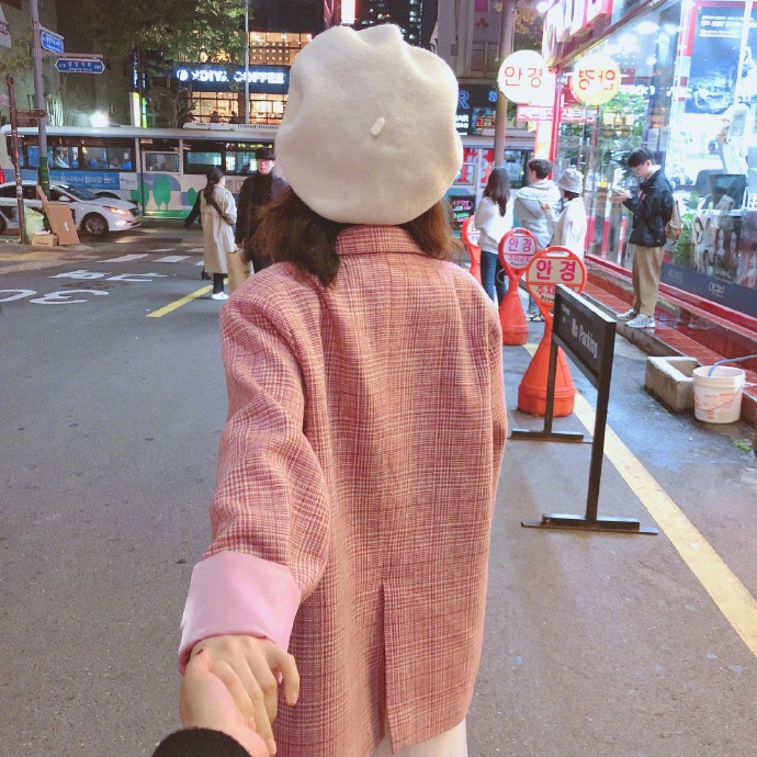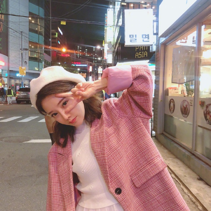 馮提莫日前在自己的微博上貼出一組街景系列照,配文「把手給我~」,照片裡的她留著一頭俏皮短髮,穿著粉紅色條紋外套內搭白色高領上衣,同時戴著白色貝雷帽,有時以背影對著鏡頭,有時側臉微笑,有時對鏡頭比心或比勝利手勢,笑容甜美,看起來相當青春可愛,背景看起來則像是在韓國街頭。有趣的是其中一張照片,馮提莫的背後剛好有一對甜蜜情侶相擁走過。