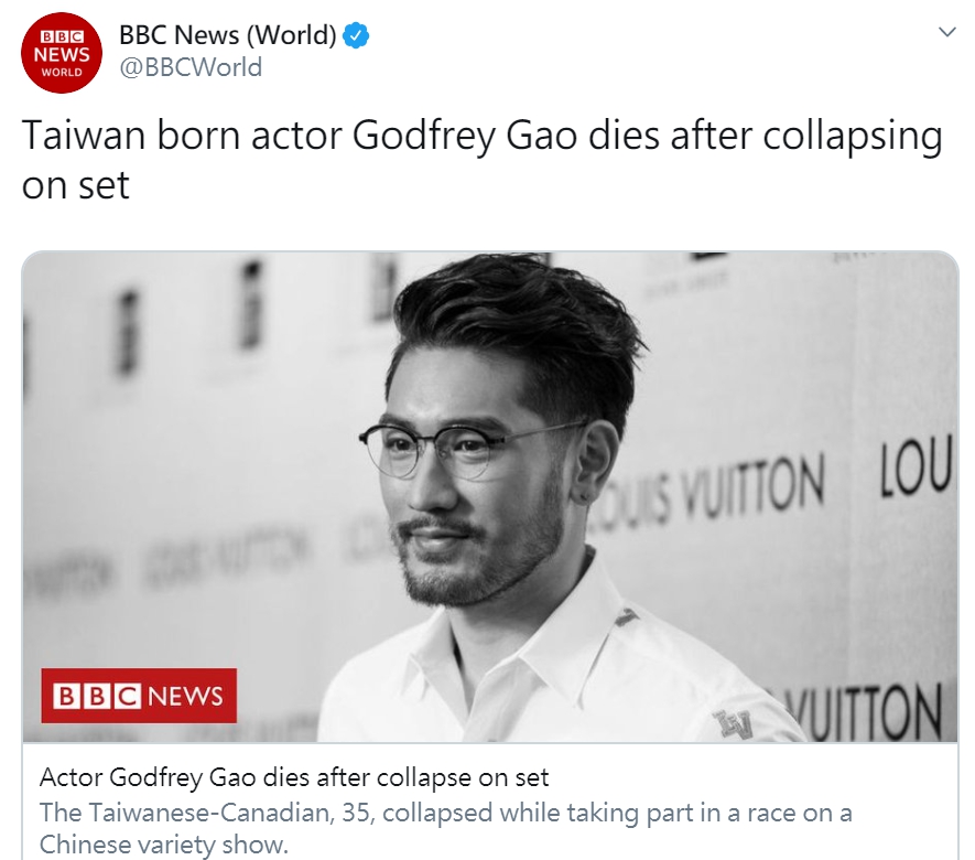 高以翔死訊震驚國際!連「CNN、BBC」都報導「敬業錄影猝逝」 哀悼:這世界沒有他,再也不一樣!