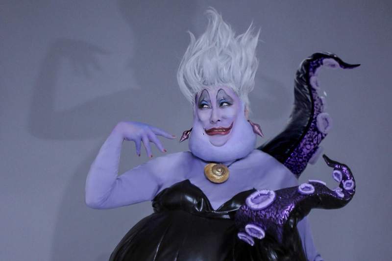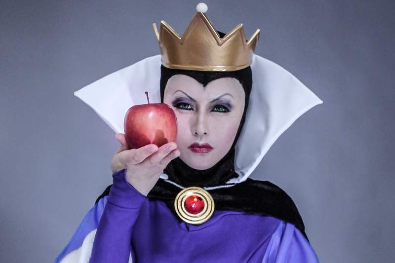 《白雪公主》裡拿著毒蘋果的皇后大概是他扮演的所有反派裡顏值最高的一位,塗著紫色唇膏和眼影、皮膚白裡透紅,手裡拿著的蘋果紅得鮮豔欲滴,卻含有可以讓白雪公主長期昏睡的毒藥;最後他還可以化身為深海裡說服小美人魚用聲音交換人類雙腿的肥胖大章魚「烏蘇拉」,黑色觸手令人看了不寒而慄。雖然這都是該位coser幾年前的作品,但如今看起來依舊彷彿二次元變為現實,相當厲害。