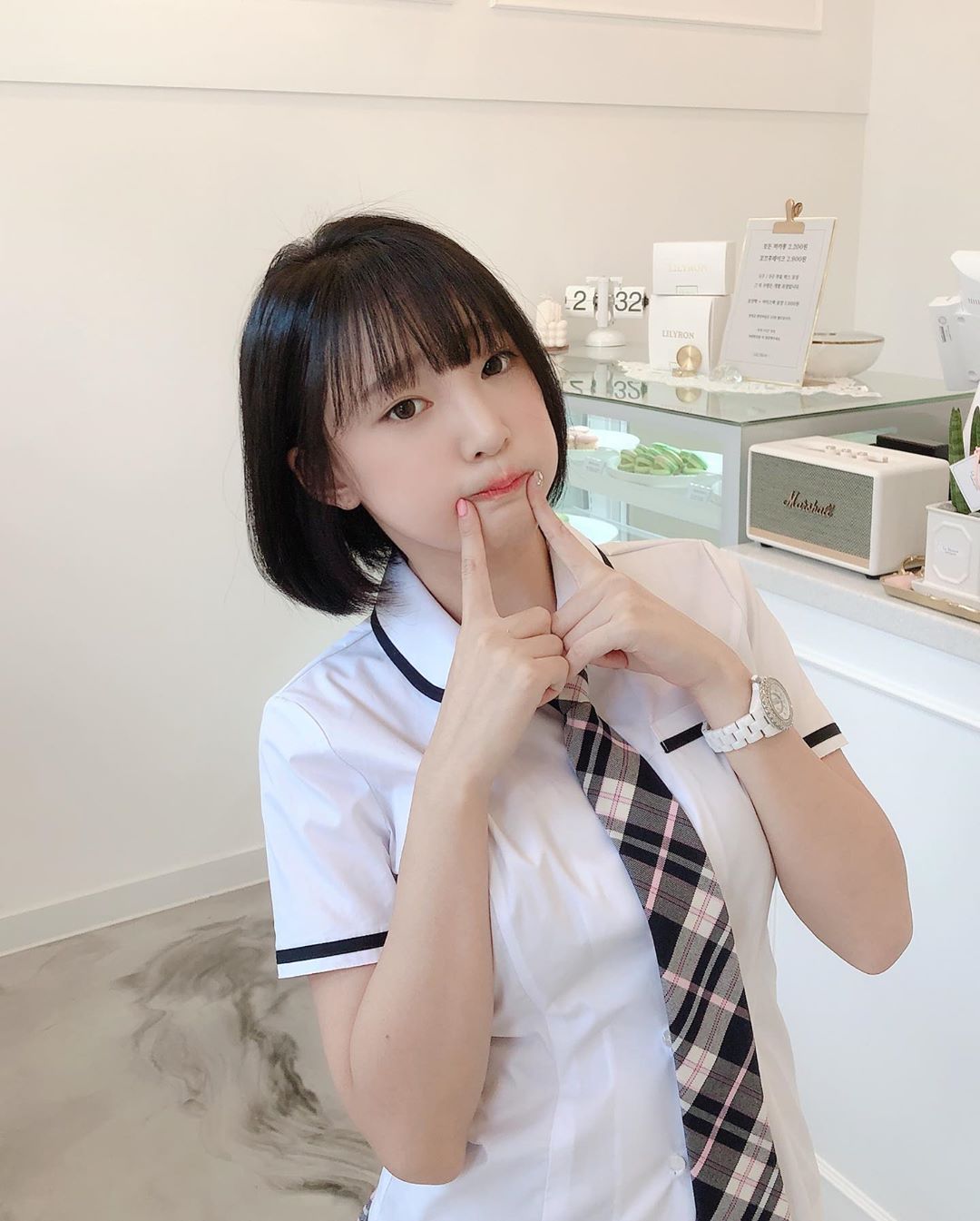 事實上,姜仁卿時常在個人IG上曬出許多清涼照片,除了有穿著學生制服照形塑出清純印象,也曾頸戴著鈴鐺,僅穿著粉色內衣,還有穿著緊身圍裙,露出一雙穠纖合度的大腸腿等照片,讓一票男粉絲看得血脈噴張!除了上傳火辣照片之外,姜仁卿也時常在IG分享生活點滴的影片,和粉絲分享自己私底下的生活,作風火辣大膽,卻又十分親民,受到大票網友愛戴。