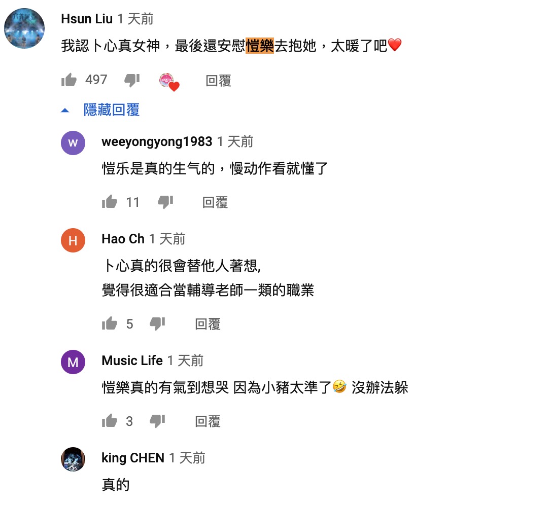 小豬的陳述讓愷樂再次當場翻起大大的白眼,還拍桌子用力嘆了一口氣,然而最後時,她被神民們成功淘汰,證實她真的是狼王。而她在被小豬指責期間的反應也引起網友熱烈討論,紛紛表示「愷樂是真的有生氣」、「愷樂真的氣到想哭,因為小豬太準了,沒法躲。」最後愷樂被確認狼王身分,也證明小豬對愷樂了解之深,判斷相當準確。