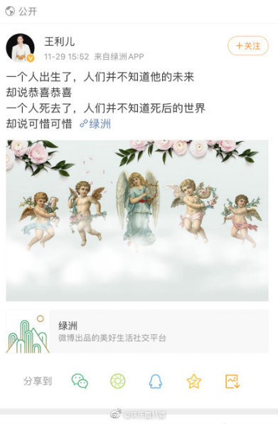 中國女主持人王利兒29日在微博發文寫道,「一個人出生了,人們不並知道他的未來,卻說恭喜恭喜。一個人死去了,人們並不知道死後的世界,卻說可惜可惜。」她的這一番話,讓不少網友都在猜測,是不是在回應高以翔父親曾在媒體面前說的「很可惜,真的很可惜!」引起了網友們的熱烈關注與討論,甚至有網友憤怒的在貼文下方痛批她,「講這話,你還配當人嗎?」