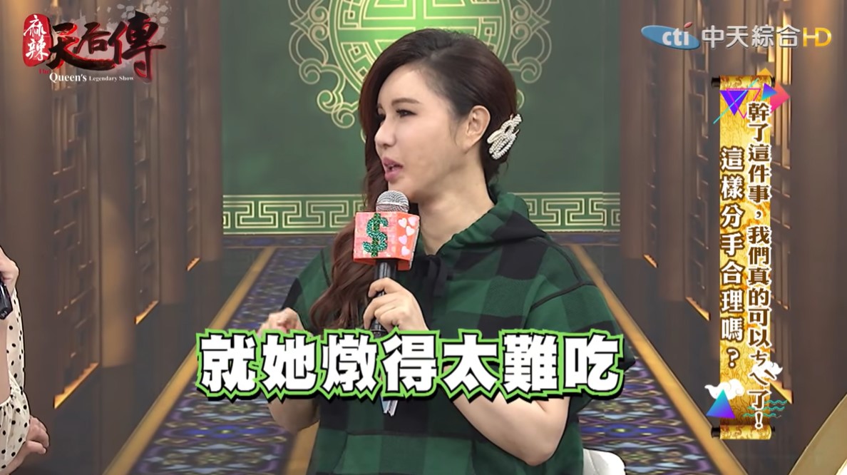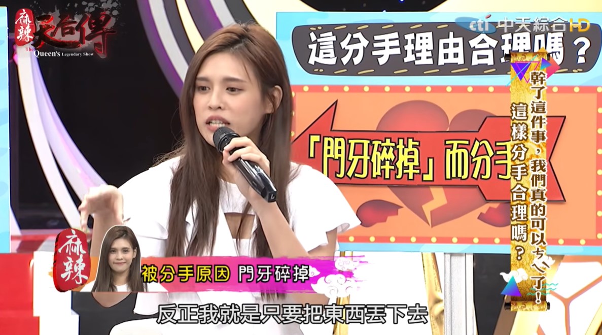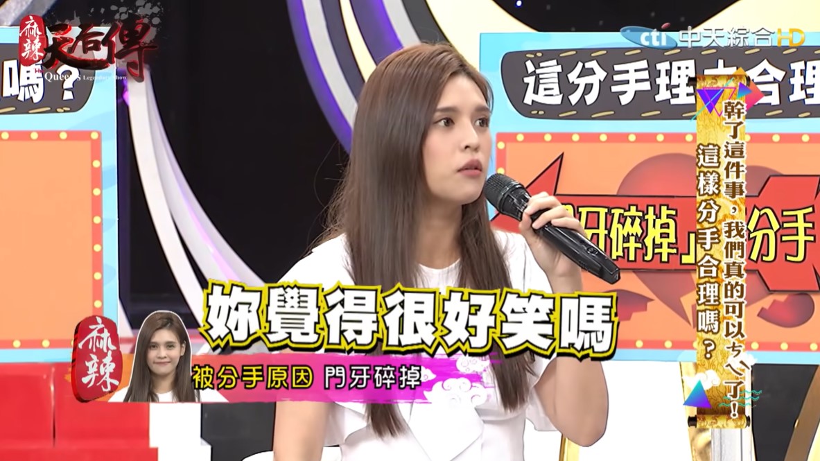 現場所有來賓聽完夏宇童的故事,整個笑到快瘋掉,夏宇童還想說,「是不是男友的牙齒不好,琺瑯質太差,才會咬到硬物牙齒就馬上碎掉」。其他來賓直接笑說,男友應該是沒面子,才會惱羞成怒直接分手吧!利菁也玩笑地說,「問題出在哪妳應該知道了吧?」,隨後又說,「就是她燉的太難吃!」現場所有人聽完都哄堂大笑。