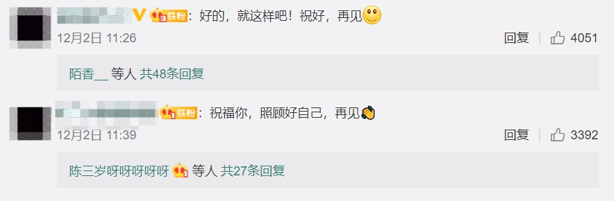 不少粉絲得知這些事情之後,覺得無法理解陳喬恩怎麼會選擇這樣的人,紛紛宣布脫粉,並且在她認愛艾倫的貼文下方留言說,「你牛逼,你真剛,要祝福沒有,要滾蛋我走!」、「好的,就這樣吧!祝好,再見」、「祝福你,照顧好自己,再見」、「希望你真心幸福!」、「沒劇本,沒臺詞,沒有心,你也沒了粉絲,我們也不祝福,只願你日後平安」,不過也有不少粉絲力挺她,認為她沒有錯,「人家只是戀愛,覺得不行可以分手啊!又不是官宣說要結婚了!」、「祝福,希望你找到屬於你的愛情」。
