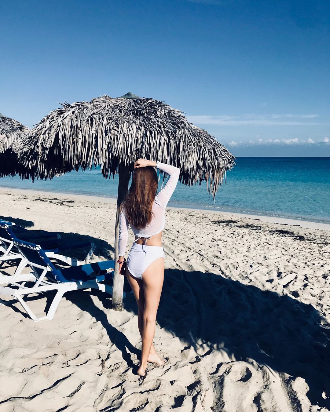 最近安妮在instagram上貼出一系列海邊美照,並且興奮寫道,「一百萬張來自古巴最美麗海灘的照片,巴拉德羅海灘~我發誓我們只花了5分鐘就把它們全部拍完了!」,我們從照片中可以看到,她戴著墨鏡搭配超大耳環,身穿一襲緊身白色泳裝,胸前領口直接大開到肚臍,完完全全露出性感的雙球,而且胯下的開衩也超高,讓她露出了腿部性感的刺青,大腿跟小腹的肌肉線條也是清晰可見,在她身上完全找不到一絲贅肉!整個人站在清澈海水中,看起來就好像水中的精靈一般。