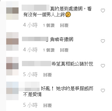 阿乃也在貼文中表示,「時間點重複到,事後又在澄清影片說,很確定當時只喜歡孫?」另外阿乃也提到,分手後還關注這些事情,只是因為有一樣的受害者私訊,才希望站出來讓大家看到真相!網友們也紛紛在貼文下方留言,「真的是到處撒網,看有沒有一個男人上鉤」、「好亂!她求的是爭服感而不是愛情」、「希望真相能公諸於世」、「同樣的手法荼毒一堆人,這女的好手段啊」。