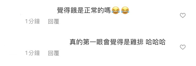 網友們除了關注呸姊要加場的資訊以外,也對於姊PO出的照片趕到非常有興趣,這張照片似乎是提前曝光演唱會的造型,讓許多網友看完都紛紛留言表示,「好像柯基的屁屁」、「好像裹粉雞腿排」、「乍看之下好像是全世界最美的一塊粉紅色香雞排」、「雞排小辣」、「猛一看真像一塊炸雞排」、「覺得餓是正常的嗎」、「真的第一眼會覺得是雞排哈哈哈」。