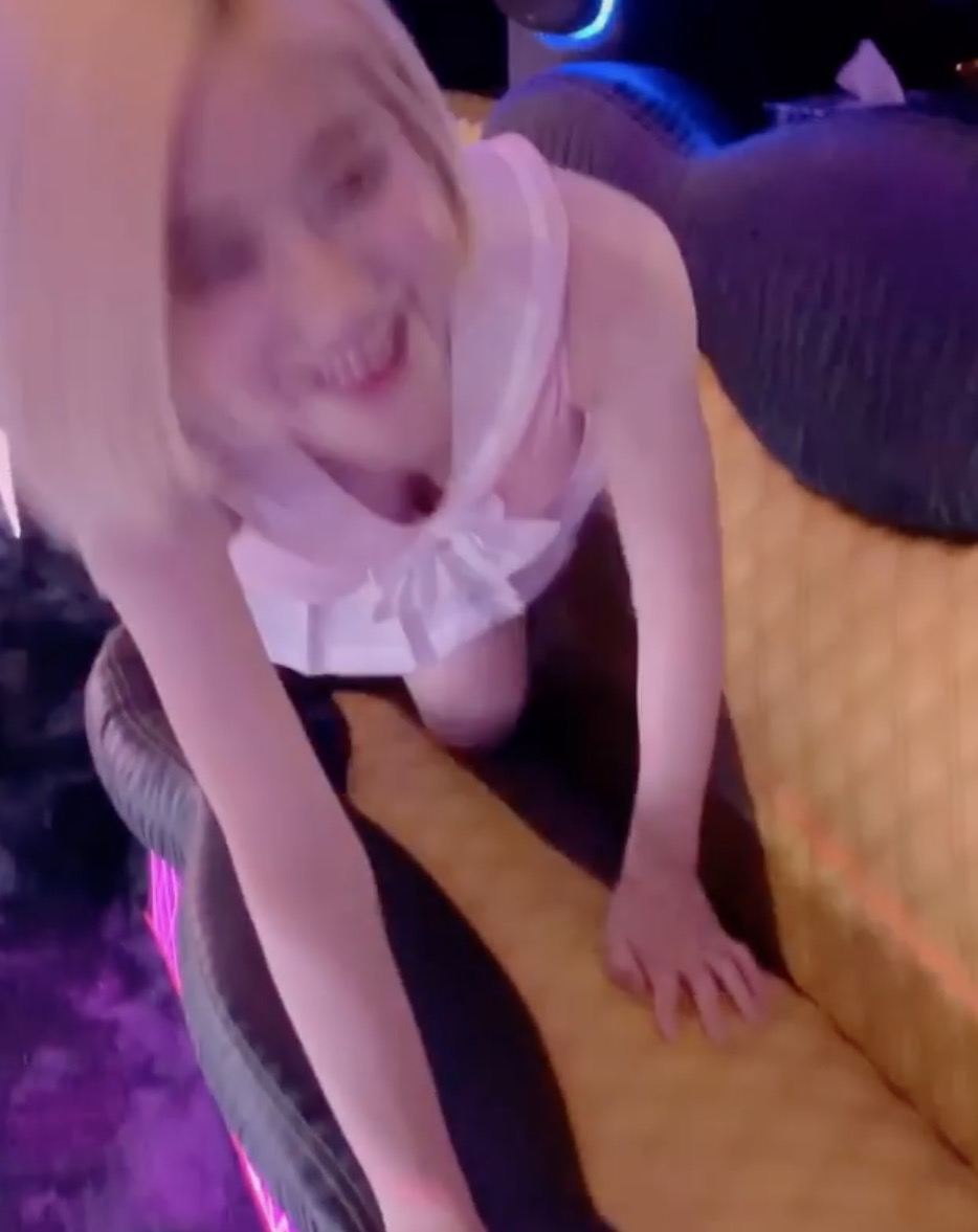 DJ Soda除了擁有驚人的音樂時之外,傲人豐滿的好身材更是讓她獲得大批粉絲愛戴的主要原因,過去在演出時也時常穿著大尺度的服裝,即便如此DJ Soda卻很能自我保護幾乎沒有看過她走光,然而在上個月月初時,DJ Soda在IG上發出一則熱舞的短片,當天她穿了一件粉色的水手服,貼身的設計讓她傲人的雙峰相當顯眼,也因為短版的關係讓DJ Soda露出纖細的小蠻腰,而她下身則是穿了一件白色的迷你百褶裙,接著鏡頭一轉她更是趴在KTV包廂內的沙發上,開始抬起臀部大跳熱舞,然而DJ Soda也在多次變換姿勢時不慎走光,甚至被眼尖的網友抓包,害羞的表示:「白色的」。