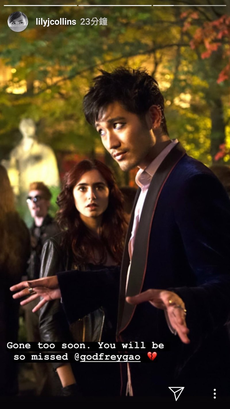 就在高以翔逝世的噩耗傳出後,好萊塢知名女演員莉莉柯林斯很快就於 Instagram 上發圖悼念高以翔,原來兩人曾經合作過 2013 年的奇幻冒險動作片《天使聖物:骸骨之城》(The Mortal Instruments: City of Bones),當時高以翔演出了原著小說的馬格努斯貝恩(Magnus Bane)。