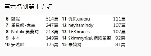 另外,最受歡迎女Youtber前五名依序則為「Kelly」、「千千」、「白癡公主」、「愛莉莎莎」、「金針菇」。從排名中可以看到,Kelly穩坐雙料冠軍,票數也跟第二名拉開一段距離,實力相當堅強。而第二名的千千也不遑多讓,不但拿下兩邊的第二名,且票數皆超過500票,可見人氣也相當高!
