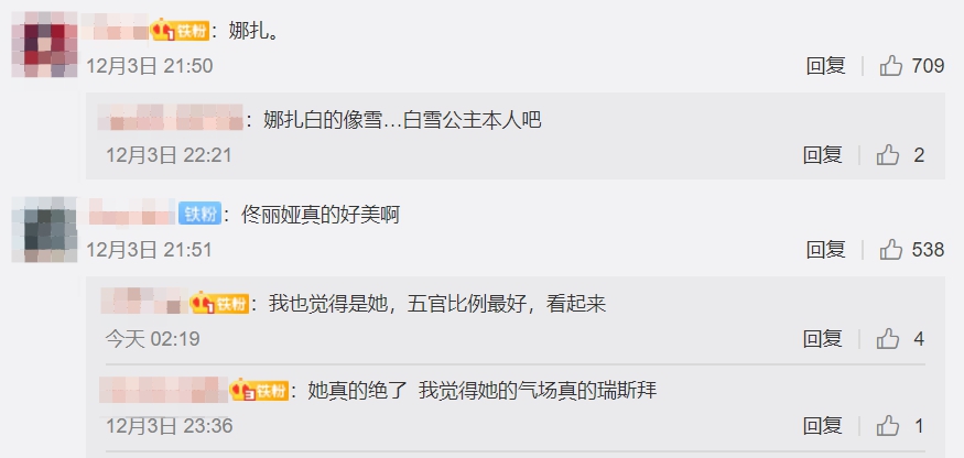 三位同是新疆出身的女星造型也不可避免地被拿來比較,引起網友熱議,紛紛留言,「娜扎和佟麗婭我選不出來」、「娜扎白的像雪…白雪公主本人吧」、「佟麗婭真的好美啊」、「這次我喜歡熱巴欸,好美」、「對不起我眼睛離不開熱巴的胸」,還有網友腦洞大開表示「感覺可以拍一齣戲了,分別是:行事磊落長相明豔豪門大小姐,大小姐寶貝弟弟的新婚妻子,暗戀弟弟並且一直勾引使壞但是運氣又不太好的女配,很有代入感。」