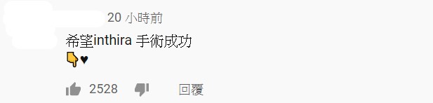術前準備完成後,Inthira也即將進入手術房,而Jeff也守在一旁為Inthira打氣,直呼「小手術」不要這麼緊張,影片中可以看出兩人對於這次的手術都非常緊張以及擔心。而這支影片一出,立刻引來網友們熱烈討論,許多粉絲紛紛擔心的留言「好人有好報,祝inthira早日康復」、「希望inthira,手術成功」、「進手術室的感覺真的很害怕的,祝inthira早日康复」。