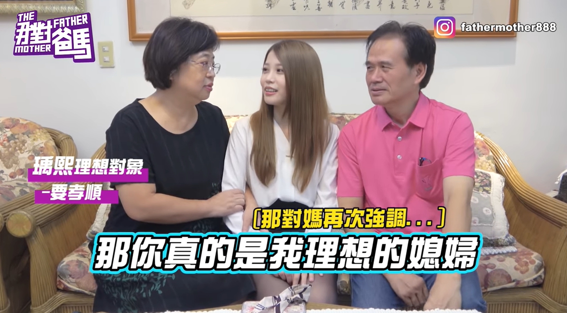 由於這對CP引起許多關注,酷炫的父母「那對爸媽」這次也邀請瑀熙作客拍片,「拷問有關兩人的戀愛情況!」其中,瑀熙直言兩人「目前沒有在一起」,讓「那對爸媽」小小失望,兩位長輩也緊接著推薦自家兒子,說出許多酷炫的優點,盼能留住瑀熙的心!最後「那對媽」也提出心目中的媳婦條件,瑀熙剛好全部符合,讓媽媽緊緊抓著瑀熙的手直呼「你真的是我理想中的媳婦」!