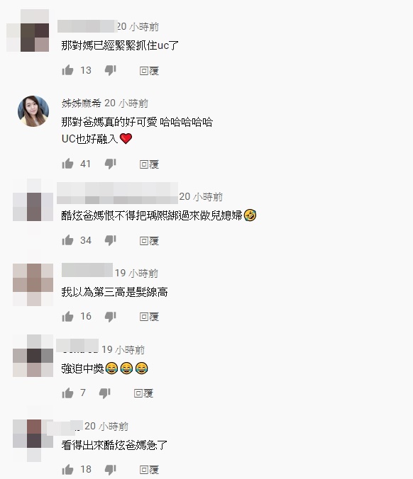 影片一出,立刻有不少網友觀看,並且紛紛留言表示,「這集重點,一家人合樂融融」、「那對媽已經緊緊抓住uc了」、「酷炫爸媽恨不得把瑀熙綁過來做兒媳婦」、「強迫中獎」、「看得出來酷炫爸媽急了」、「這對真的很配,酷炫要好好把握」。