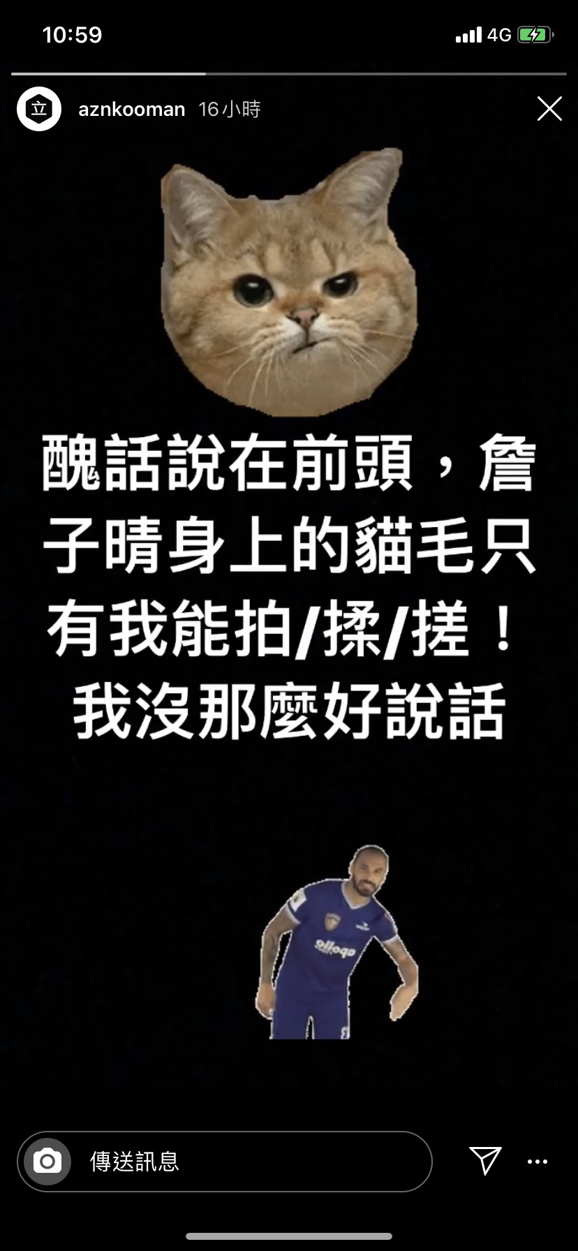 沒想到丫頭的男友竟然在社群平台上直接發文寫道,「醜話說在前頭,詹子晴身上的貓毛只有我能拍/揉/搓!我沒那麼好說話!」很明顯就是在隔空喊話,讓大家紛紛猜測他是在酸楊晨熙的經紀人,不應該對藝人做出這樣的舉動!