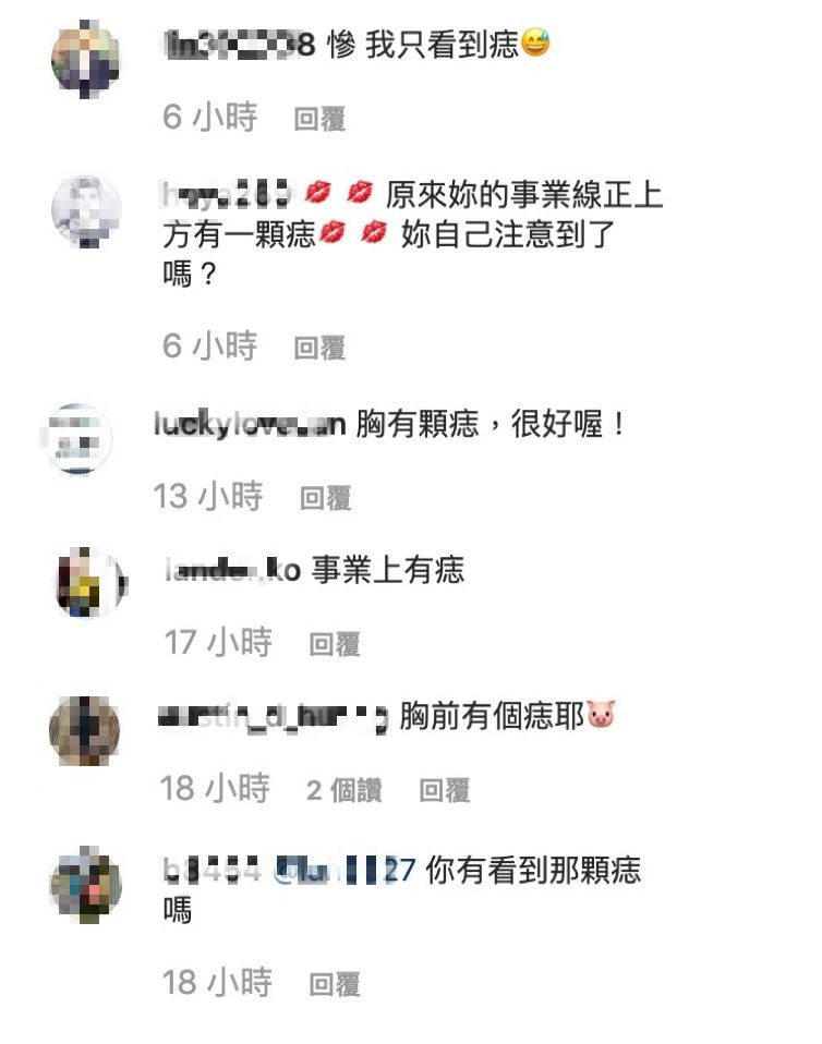 昨日元元在IG上傳了一則自拍的影片,並配上文字:「今天終於把寫真卡簽完!開心100分~~」,畫面中元元身穿一件白色的素色內搭背心,外頭再罩上一件藍色的罩衫,在鏡頭前元元也擺出許多可愛的姿勢,而當她身體向前傾時除了露出豐滿的上圍之外,中間一條深溝也相當吸睛,其中就有網友發現深溝中的大亮點「藏了一顆痣」,紛紛留言表示:「胸前有個痣耶」、「你有看到那顆痣嗎」、「事業上有痣」,意外的引起關注。