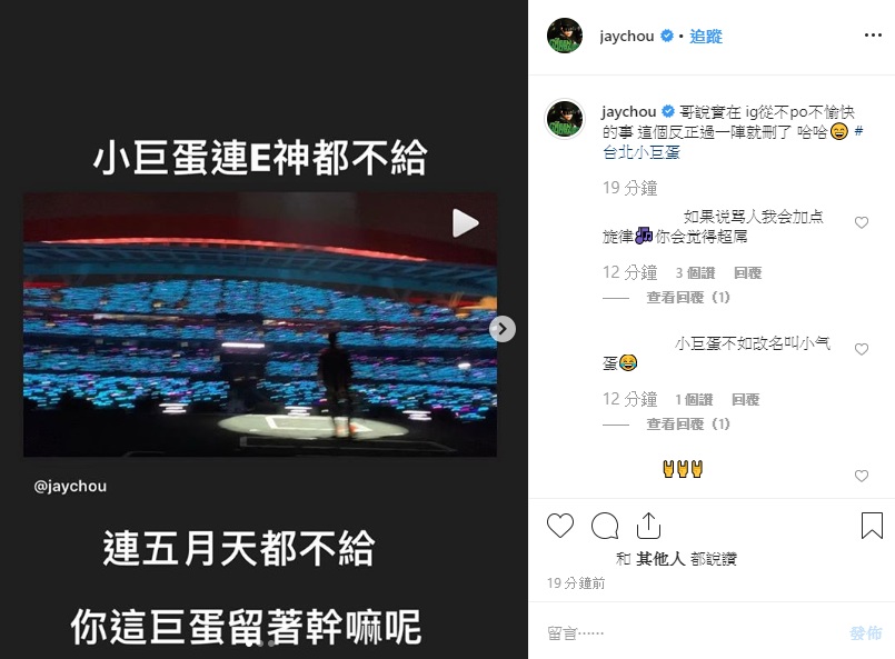 周杰倫回台開唱竟遭拒!直接IG開嗆「回老家唱也不行?你這巨蛋留著幹嘛?」 網痛罵:改名叫小氣蛋啦!