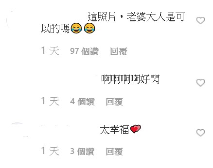 不少網友看完照片都紛紛留言表示,「太幸福!」、「啊啊啊啊好閃」、「也太甜了吧!受不了~」還有人開玩笑調侃坤達說,「這照片,老婆大人是可以的嗎?」、「這個晚上應該不好過」、「你確定PO這張沒問題嗎?」、「哇!這樣賣老婆不好吧!算盤跪起來...」。